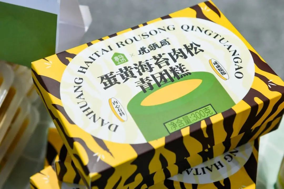 除了“彩团子”,今年盒马还与新中式烘焙品牌虎头局联名推出了一款“异形青团”——蛋黄海苔肉松青团糕,口感软糯但不粘牙,在传统咸蛋黄肉松口味的基础上融入海苔的清香,外型在众多青团中也可谓是“特立独行”。