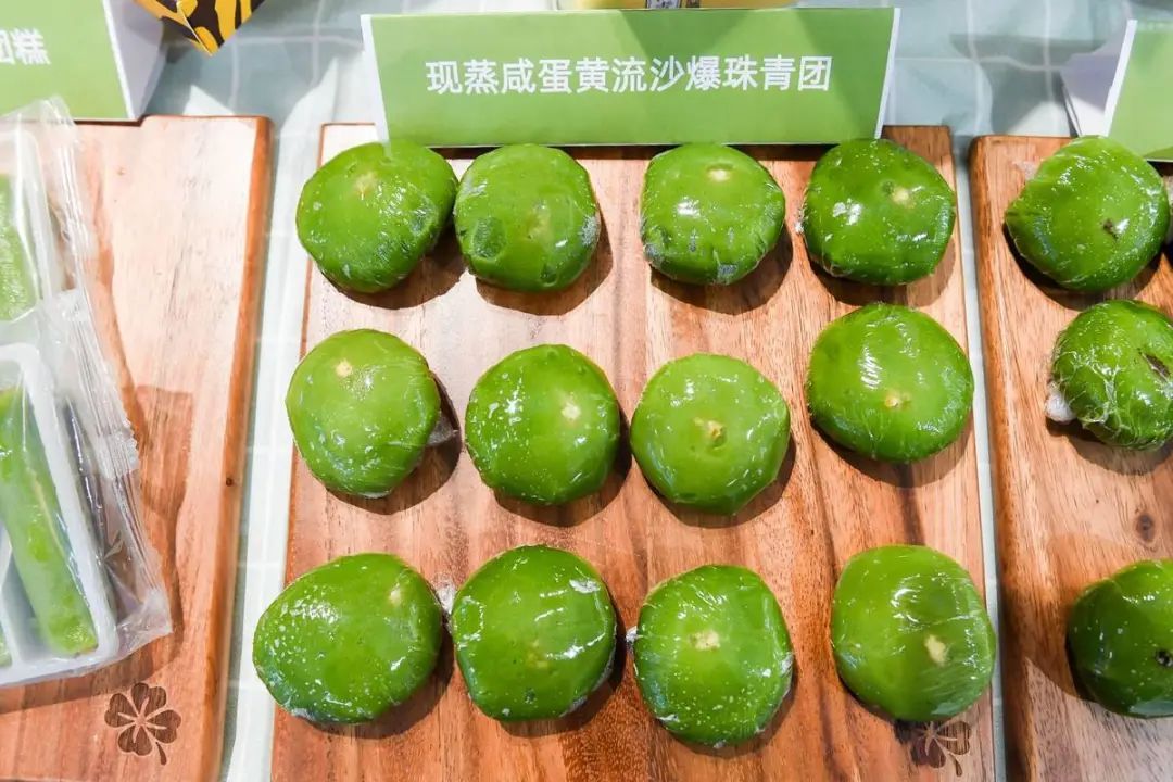 豆沙青团是甜口青团中的经典,咸蛋黄肉松青团则扛起了咸口青团的大旗。成都、武汉地区的消费者更喜欢这款青团。
