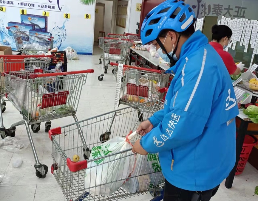 美天副食品公司则针对封控社区不熟悉网购的老年居民们,联系了不少居委会,由社区在当天14时之前集中提交居民的“购物清单”,美天将在晚间统一备货,并于次日上午送达。