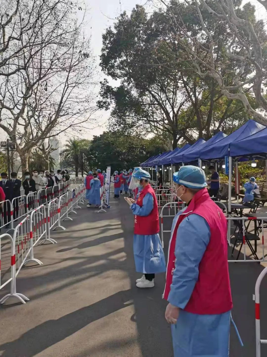 在重点区域网格化核酸检测任务一下达,筹建核酸检测点工作时间紧、任务重,区民防办接到相关街道急需帐篷的求援,立即组织人员连夜准备物资,协助搭建设施,共支援帐篷37顶。