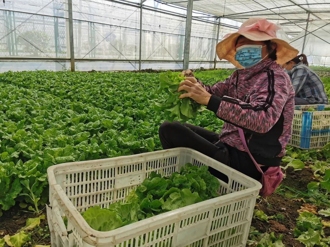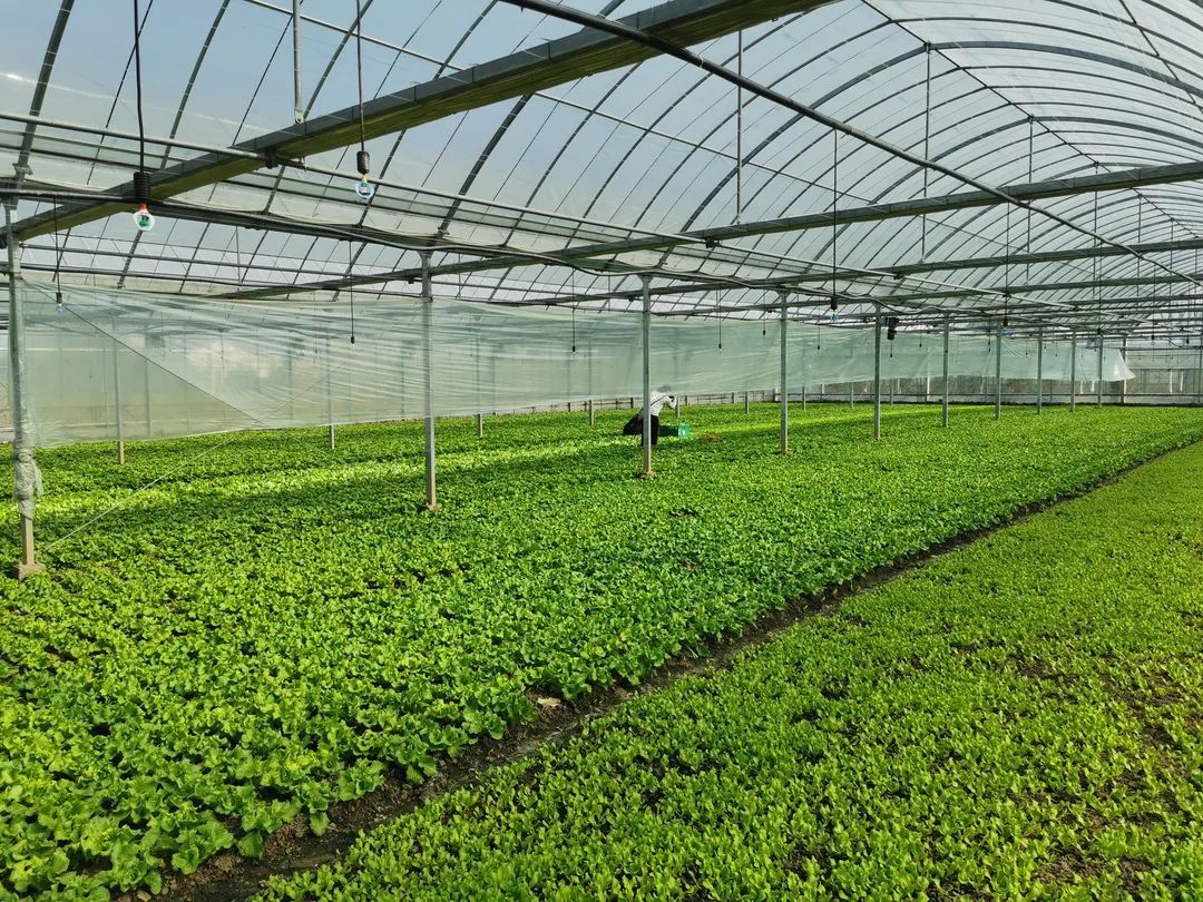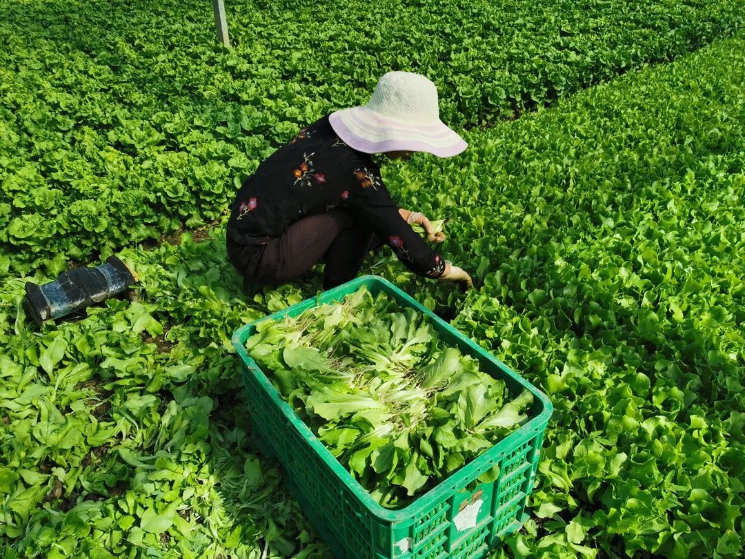 在罗泾镇新陆村上海瑞隆蔬果专业合作社生产基地,220亩的绿叶菜基地种植着生菜、鸡毛菜、茼蒿等当家绿叶菜。大棚里面,菜农正专心地摘菜,为当天的供应做准备。这个基地年产绿叶蔬菜2000余吨,主要通过叮咚、盒马等主流电商平台走货,全部供应上海本地市场。