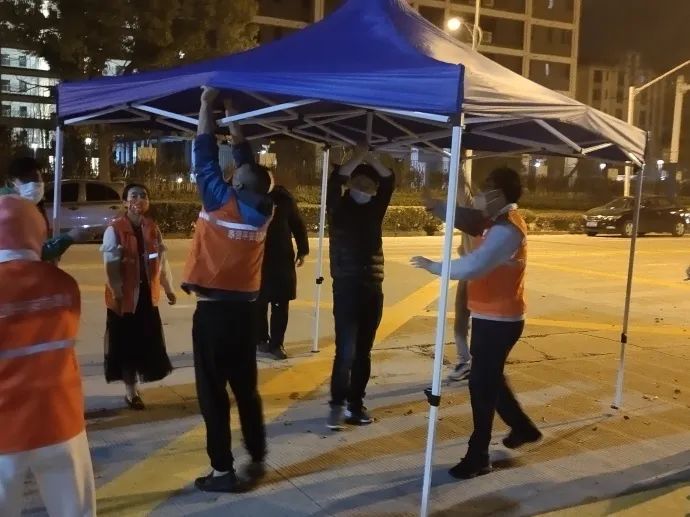 很快,在佳兆业1期阮先生、景源名墅尤先生的牵头,和佳兆业2期张先生的积极联系下,一支25人的社区志愿队迅速集结完毕,立即投身核酸检测点位前期准备工作当中。