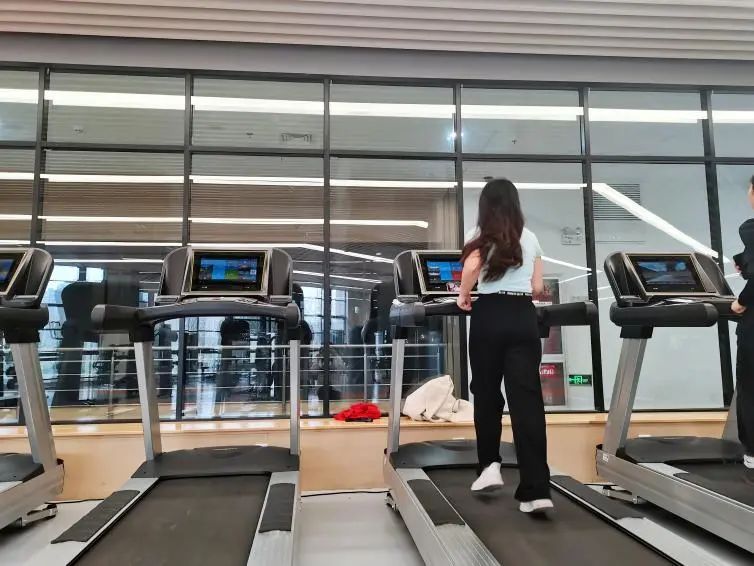 在江湾校区的健身房跑步和做力量训练
