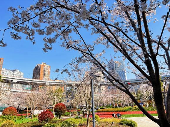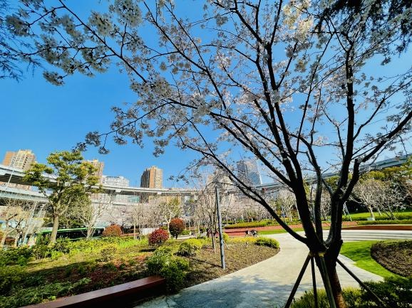 在南浦大桥正下方,有一座低调的“蓝调花园”。这个季节,花园内的樱花正漫天飞舞。相比它的“邻居”——魔都“最美樱花车站”,蓝调花园的樱花可谓是鲜为人知,但稍微走进它一点,你会发现,蓝调花园的樱花,丝毫不逊色于“最美樱花车站”。