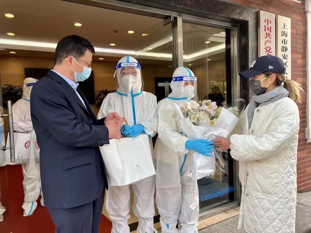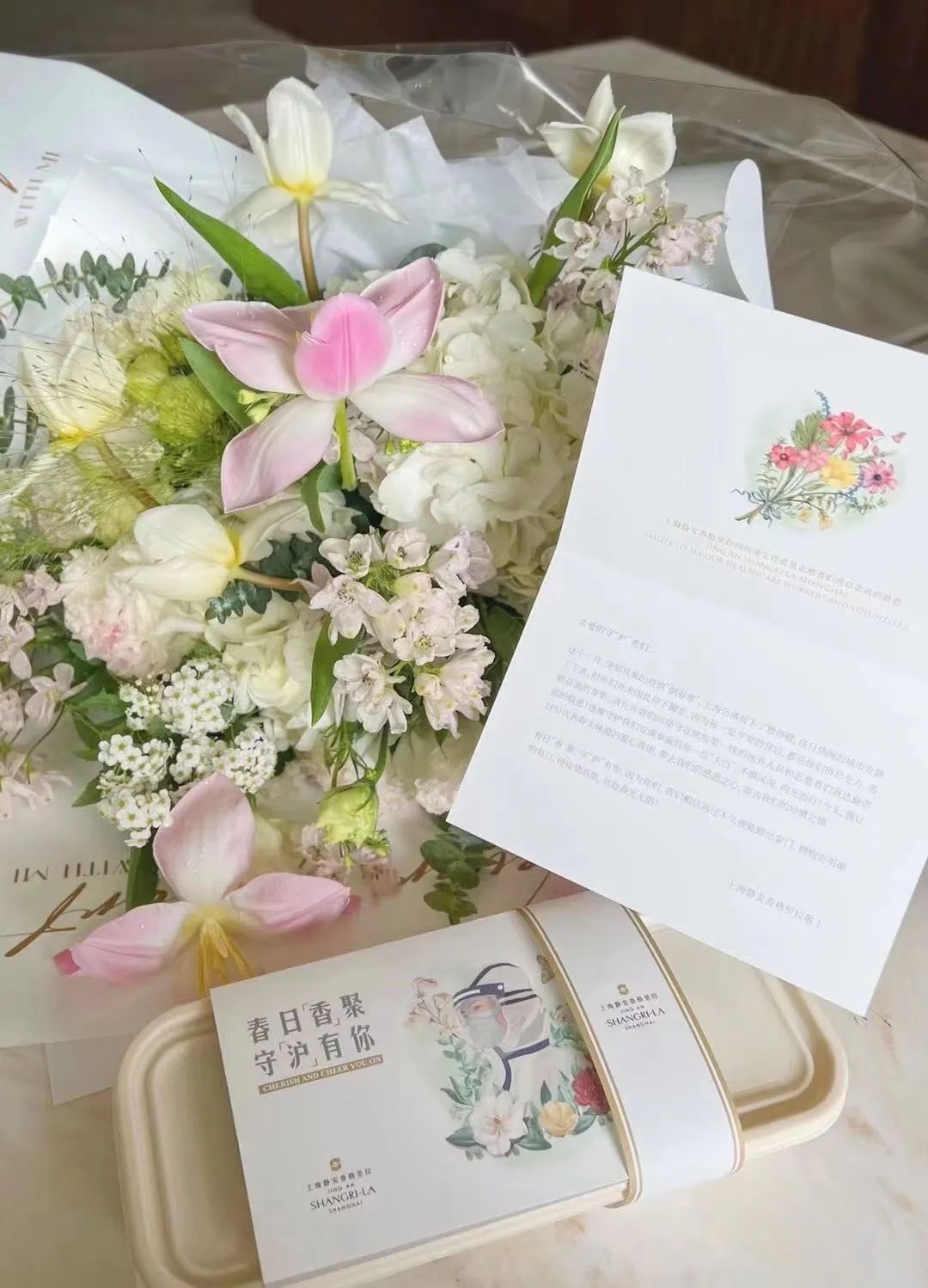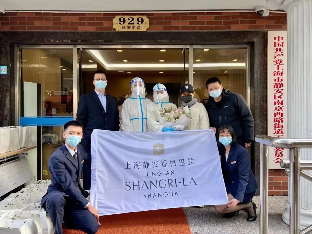 3月28日,上海静安香格里拉大酒店为南京西路街道的“大白”们送出了一份特别的爱心物资——青团及茶饮。