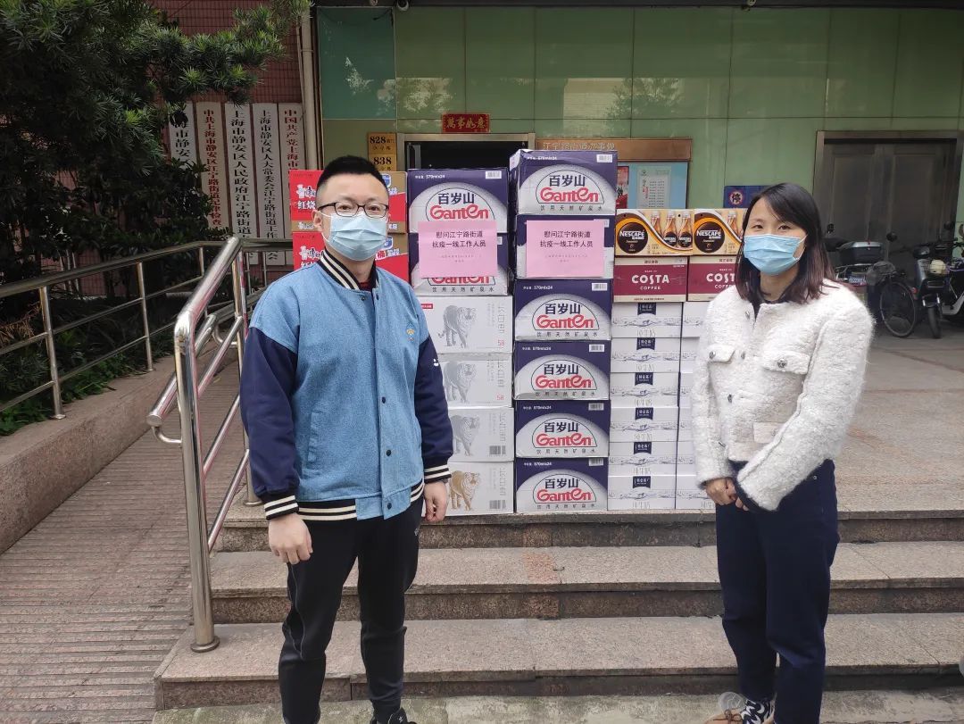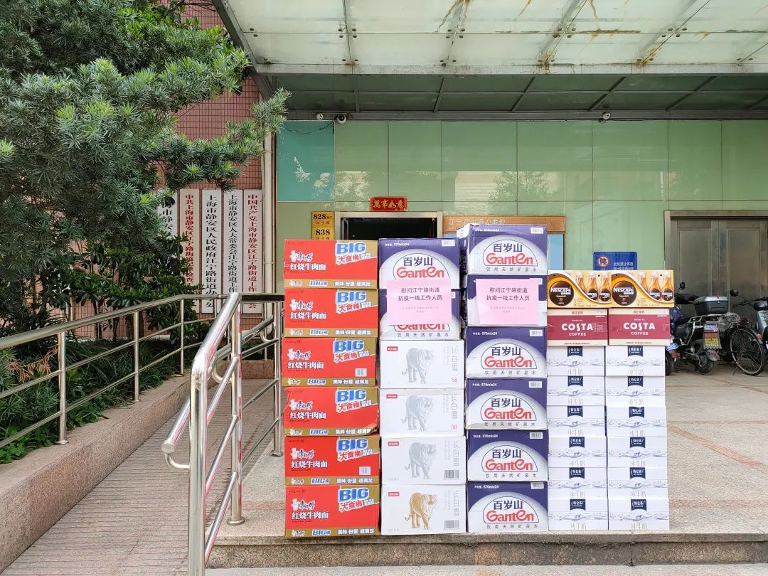 上海聚水潭网络科技有限公司的“小水滴”们也迅速行动起来,紧急采购食品、饮用水等生活物资,并于28号下午为江宁路街道一线抗疫人员送上了矿泉水、牛奶、咖啡以及泡面等爱心物资,让一线医务人员和志愿者在辛苦忙碌的工作后可以及时补充能量。