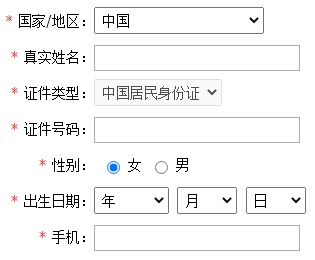 如实填写个人基本信息:国家/地区、真实姓名、证件类型、证件号码、性别、出生日期、手机号码