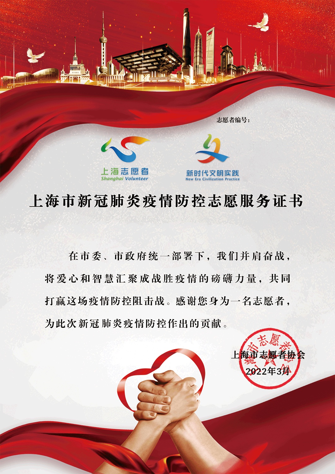 上海市新冠肺炎疫情防控志愿服务证书