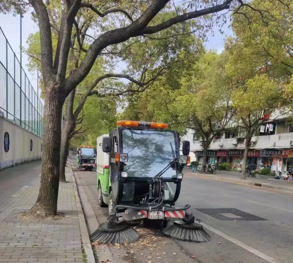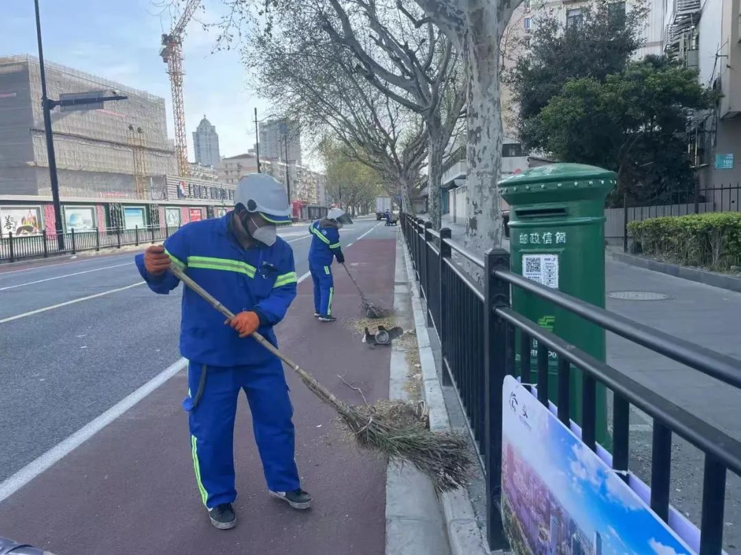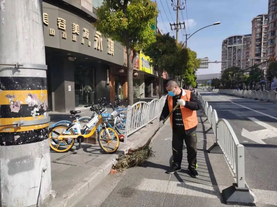 高洁公司虹桥巾帼班班长林玮带领组长、管理员3人,配合公司开展道路垃圾清零行动。