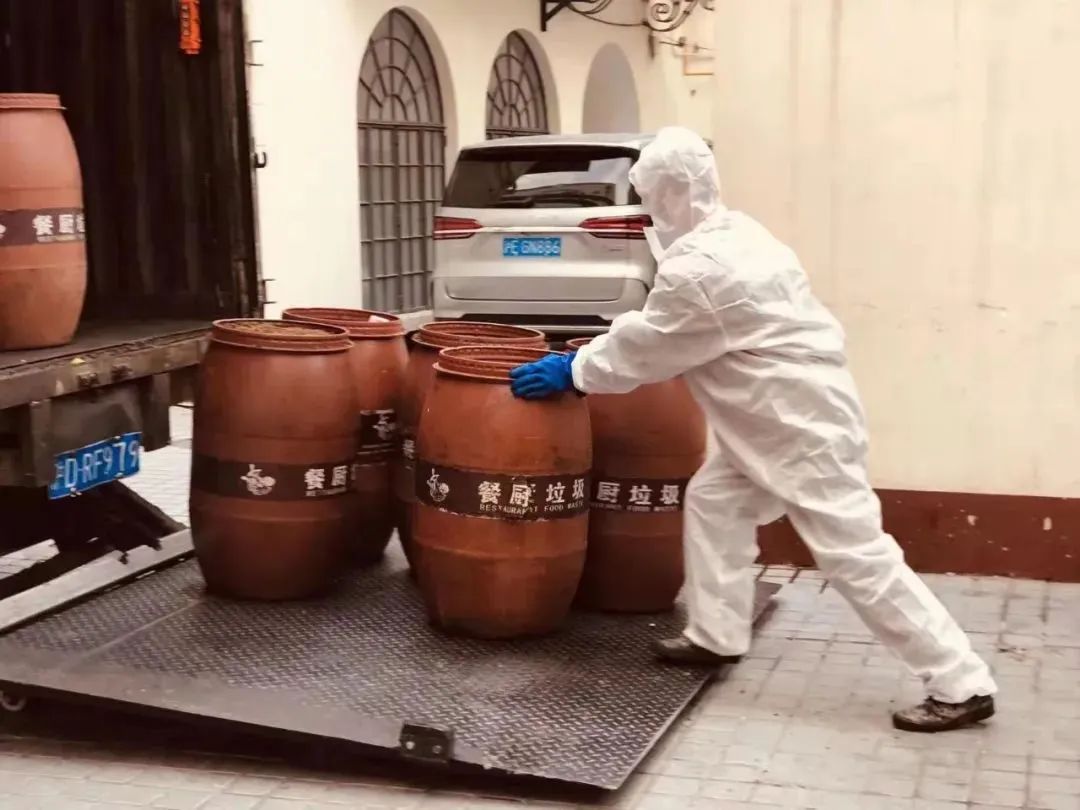 在区废弃物处置中心,一线作业人员穿着防护服,保质保量完成日常小区湿垃圾、部分单位餐厨垃圾清运工作。
