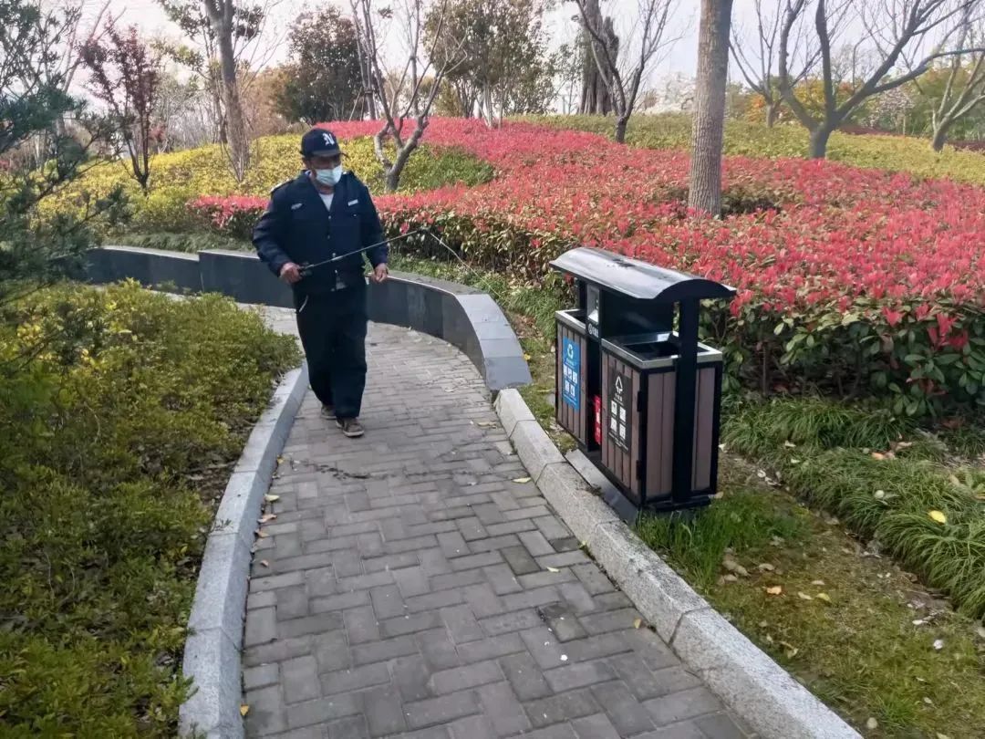 公园管理人员也会定期对区属公园绿地出入口、公厕、公共座椅、废物箱、游乐设施等开展保洁消杀工作,确保关闭期间安全有序。