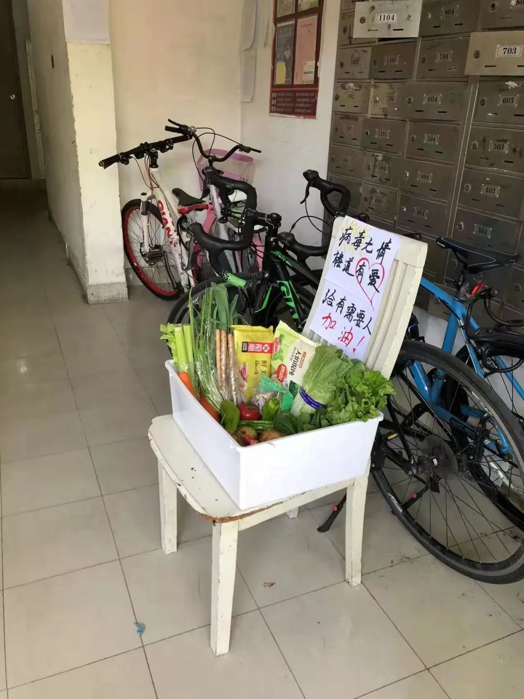 无独有偶,4月3日,泗泾镇新凯四村玉兰苑14号楼的居民惊喜地发现,楼栋志愿者主动提供自家的蔬果食材,放在一楼的大厅里,供有需要的居民自取。不少居民见状纷纷效仿,将富余物品贡献出来,邻里间的友爱互助真切传递出社区的温度。“谢谢志愿者的万金家‘蔬’!”新凯四村居民区党支部“第二书记”邢四威说道,“当前疫情形势严峻,但阴霾中依然有阳光,大家团结一心,战‘疫’终将胜利。”