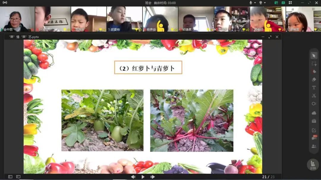 从一粒种子到盘中餐,一棵蔬菜来之不易,在这段齐心抗疫的日子里,蔬菜从农田到餐桌的旅程,更多了无数暖心的故事。社区工作人员和志愿者一次次将配送和团购的菜送到每家每户,邻里之间也相互关爱,小小蔬菜体现着人间真情。这节课学生们心里暖暖的,围绕蔬菜,学生们也说起了自己家的故事: