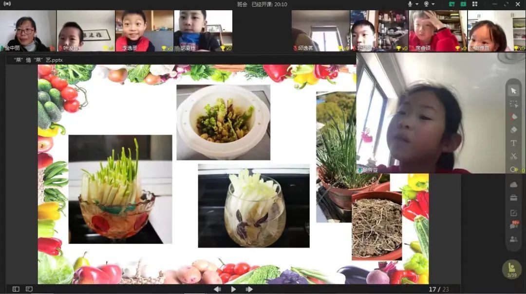 近日上海市张江高科实验小学的云间课堂中,教师金中丽晒出自家种的蔬菜,又将简单易学的水培种植法教给学生们。有意思的是,金老师投入感情的讲述,将蔬菜的种植变成了一个个有趣的小故事。