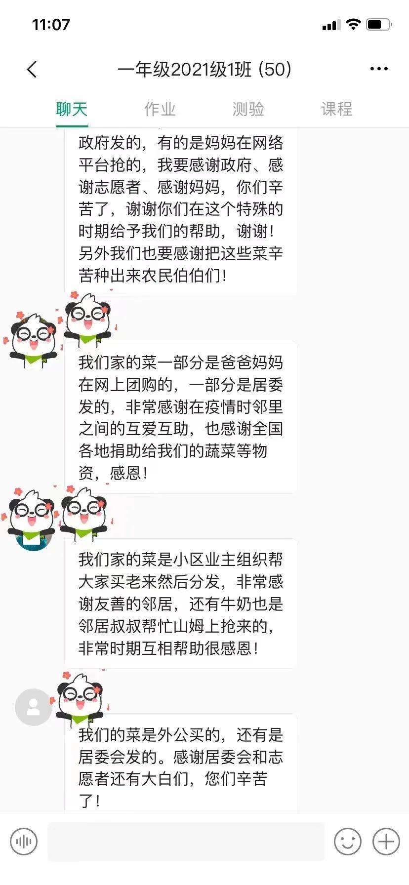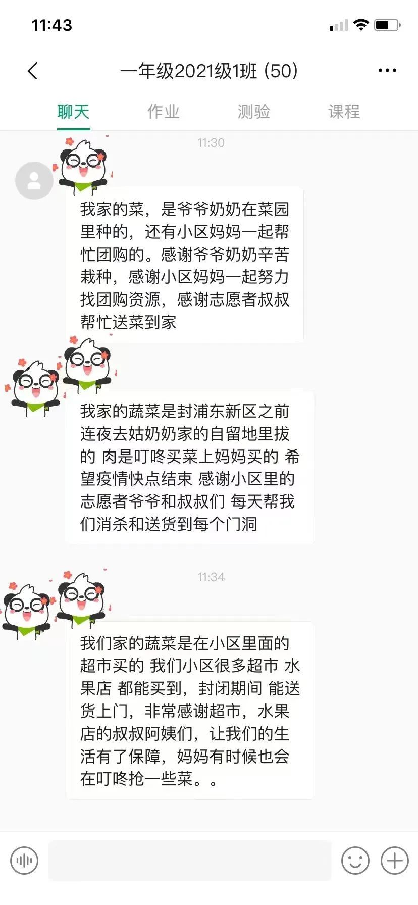 “我家的菜是爷爷奶奶在菜园里种的,还有小区妈妈一起帮忙团购的。感谢爷爷奶奶辛苦栽种,感谢小区妈妈努力寻找和分享团购资源,感谢志愿者叔叔帮忙送菜到家!”