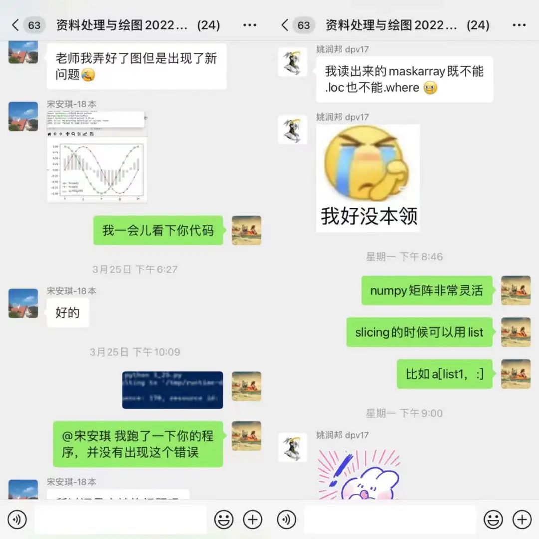 “这门课知识精炼,实操多,注重交流。虽然和老师‘屏对屏’,但沟通很顺畅,遇到难点很快能迎刃而解,没有因为线上而感觉到学习效果不佳。”王云松同学说。着眼于实践技能,聚焦个性化需求,在大气与海洋科学系师生共同的努力下,将课程效果发挥到最佳。求知路上有困难不必畏惧,大家一起攻克难关。
