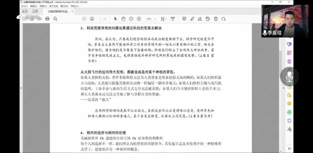 季嘉程同学在线上进行辩论