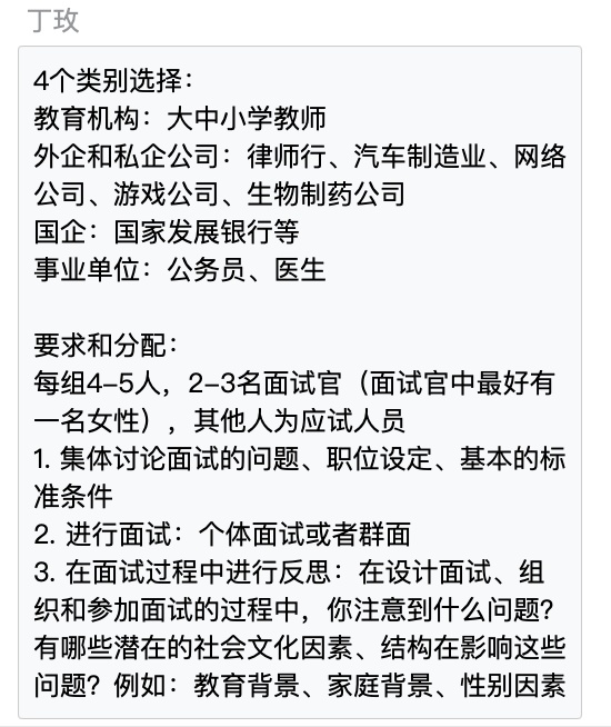讨论课上老师设计的情景面试