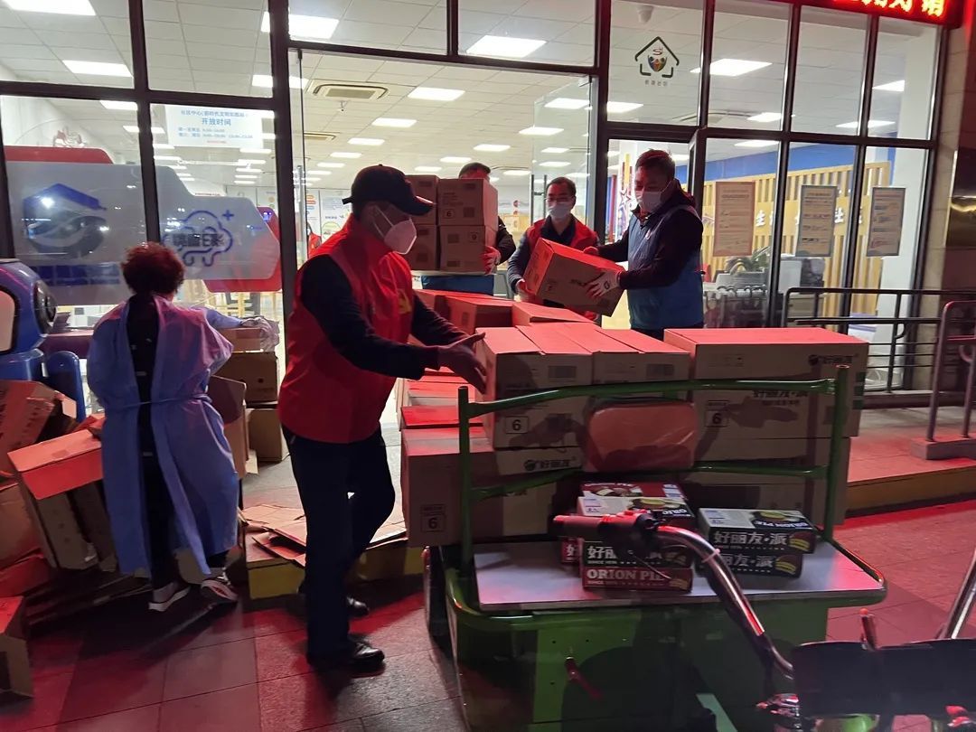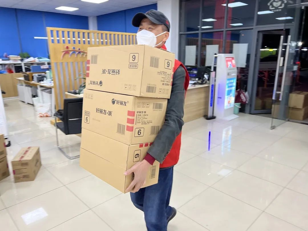 为了保证封控期间居民的正常生活所需,公司还承担起为业主配送物资的任务。在小区大门口增设临时货架,摆放快递和外卖,由物业人员对其进行分拣消杀,随后配送到业主家门口。同时,还协助社区运送物资,确保物资配置充足。