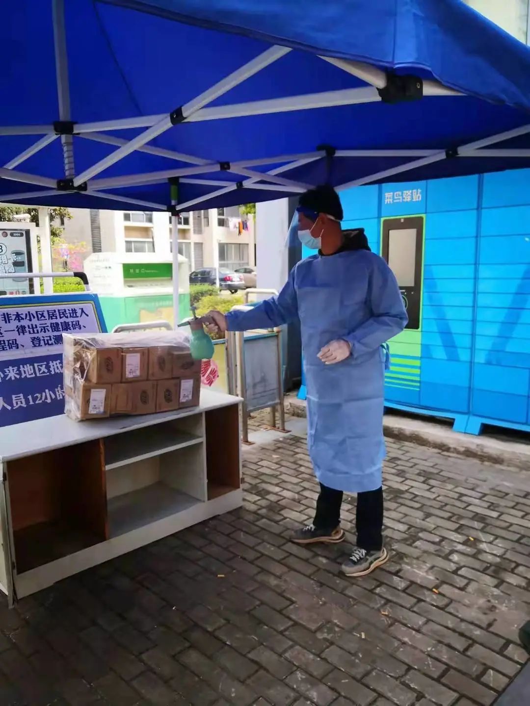 疫情就是命令,人民群众的利益高于一切,延吉物业在第一时间安排保洁员工搬运各种防疫物资,配合街道的防控人员搭建帐篷,清理外部大环境,并积极对所有楼道、电梯和公共区域进行消毒处理。