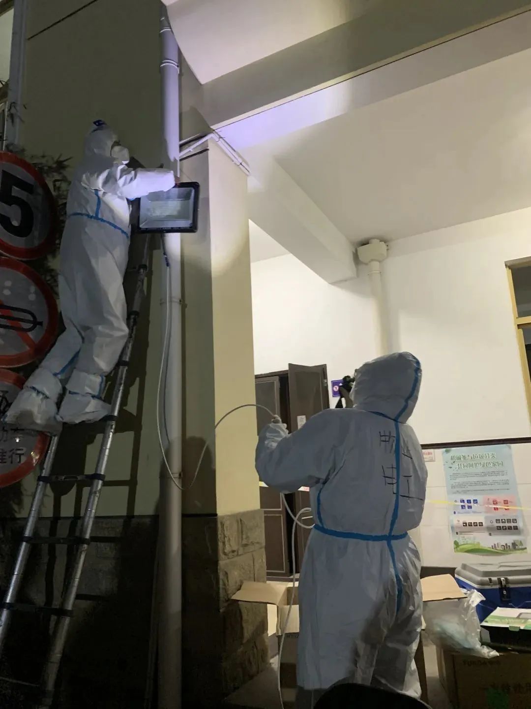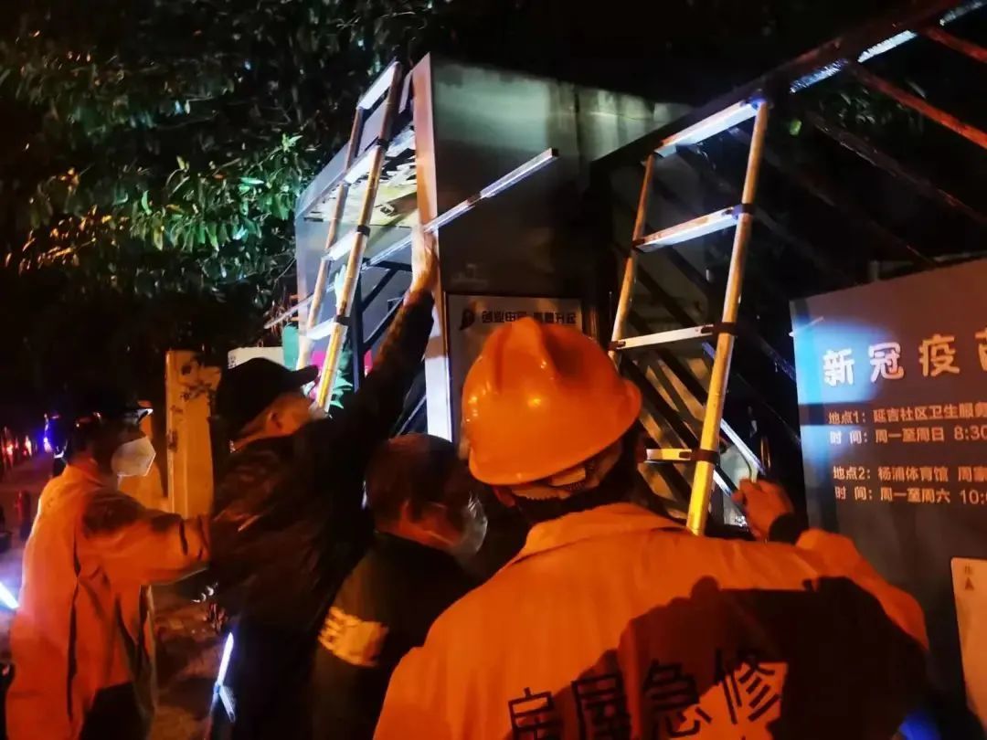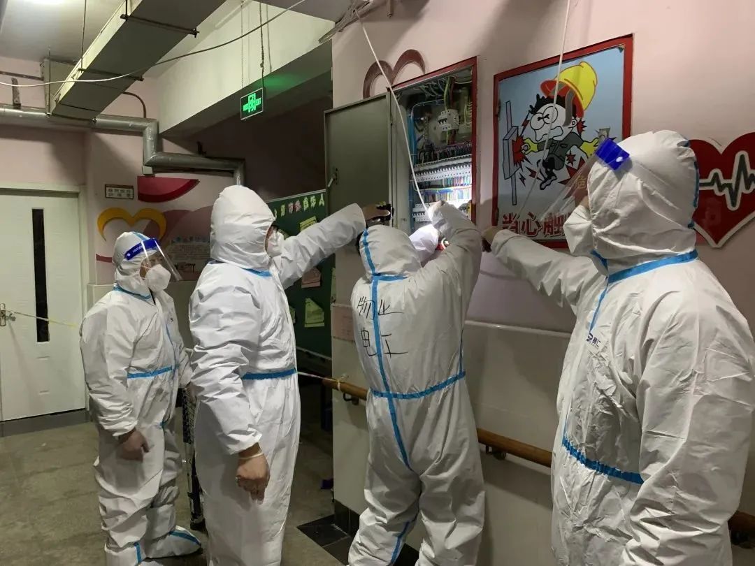 上海市物业行业最美物业团队-延吉物业维修分公司在接到疫情命令后,委派最有经验的团队为现场布控环境接线接电,让被疫情肆虐的小区充满光明的能量,让病毒无死角地暴露在阳光下,为防控工作照亮前进的道路。