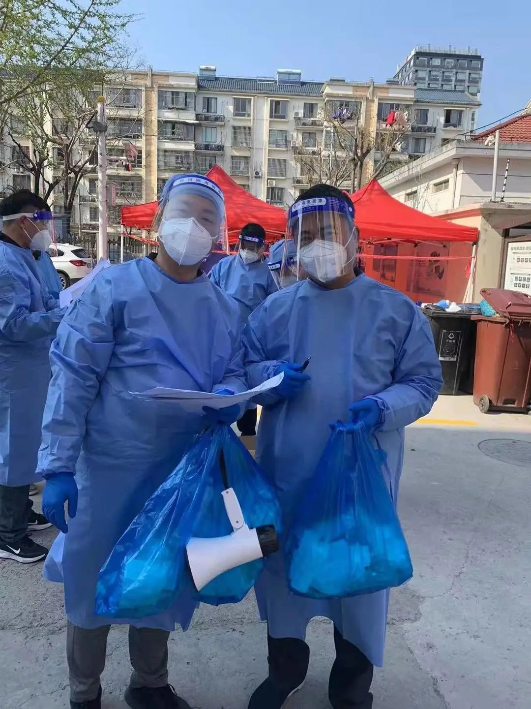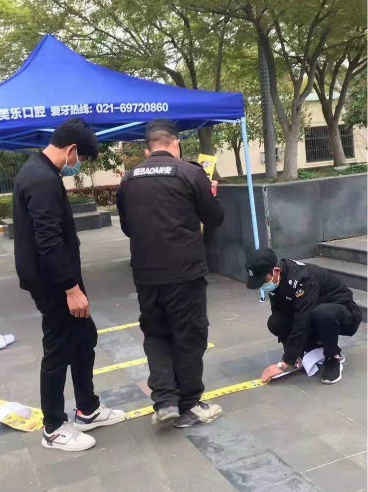各项目管理处积极配合属地居委做好核酸检测场地搭建、准备整理、及时通知、秩序维护等工作。面对现场数量众多的待检人员,物业工作人员坚守一线,协助核酸检测有序进行。