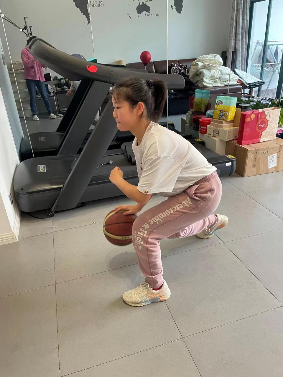 “每天除了一小时的线上训练,我还坚持用哑铃做手臂弯举、颈上推举以及负重深蹲等力量练习。”松江七中男子U15篮球队队员范毅男说。疫情之下,和他一样,为备战本届市运会,松江七中男女篮球队的队员们积极开展居家锻炼,保持运动水平。