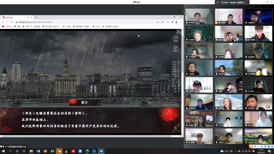结合语文课内容,孩子们分组开展《雷雨》等红色课本剧表演,老师和家长在线观看并充当评委。