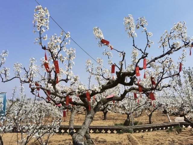 株株梨树,参差错落,姿态万千,构成了一幅天然的水墨画,绚丽而壮观。更令人惊奇的是,这些开花的梨树,竟有数百棵树龄在400年以上。