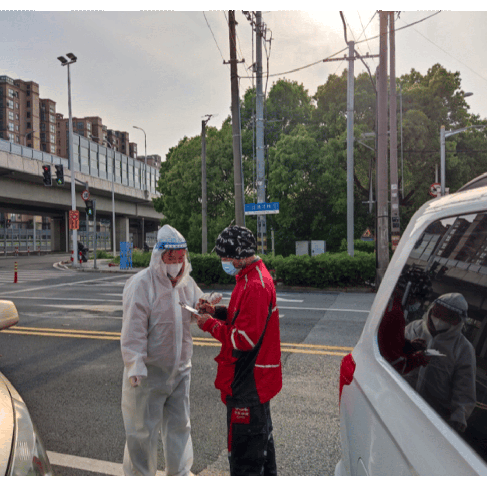 “请大家明早6:30准时到贸易路北道口集合!上岗前必须接受防疫志愿服务培训,并知悉道口管控要求。”这是上海崟瀚市政工程有限公司总经理俞志强4月16日连夜发在公司职工群里的一则微信。同时作为区人大代表、浦银名誉居委会主任,俞志强对家乡这条重要通道——贸易路十分熟悉,该道路是新农社区、牡丹村、慧农村和温河村村居民通行的主要出入口,那里接壤城乡接合部,外来人口多、老旧小区多,交通压力大、情况复杂,为此,俞志强安排上、下午各4名员工志愿者分别值守南、北道口,引导行人、车辆;另外2名机动志愿者,负责规范停放电瓶车、巡逻、代买药。而他自己也全程参与。值守期间,他们一次次细致核查证件、登记外卖及快递人员进出信息、耐心解释当前疫情形势和防范区规定,严控外来人员进入。一天下来,防护服下汗水浸透衣衫,声音沙哑,但他们毅然扛起这份沉甸甸的责任,努力守护着一方平安。