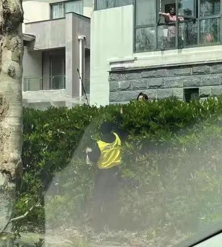 △在防疫条件允许情况下,配送员们垫着脚尖、隔着绿化墙为封控区居民送上“每日鲜语”鲜牛奶