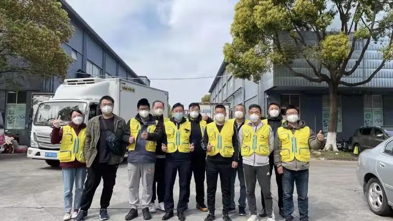 △蒙牛员工在上海疫情前线合影