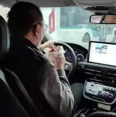 在配送的私家车上吃饭