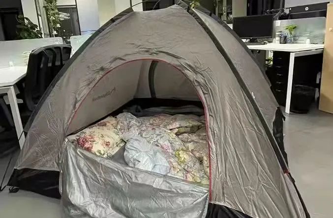 △为保证及时配送,蒙牛配送员们在办公室搭帐篷休息