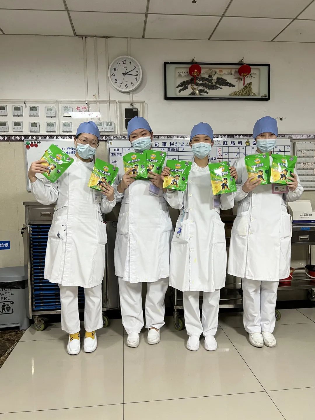△收到妙可蓝多奶酪棒的医护人员纷纷拍照留念