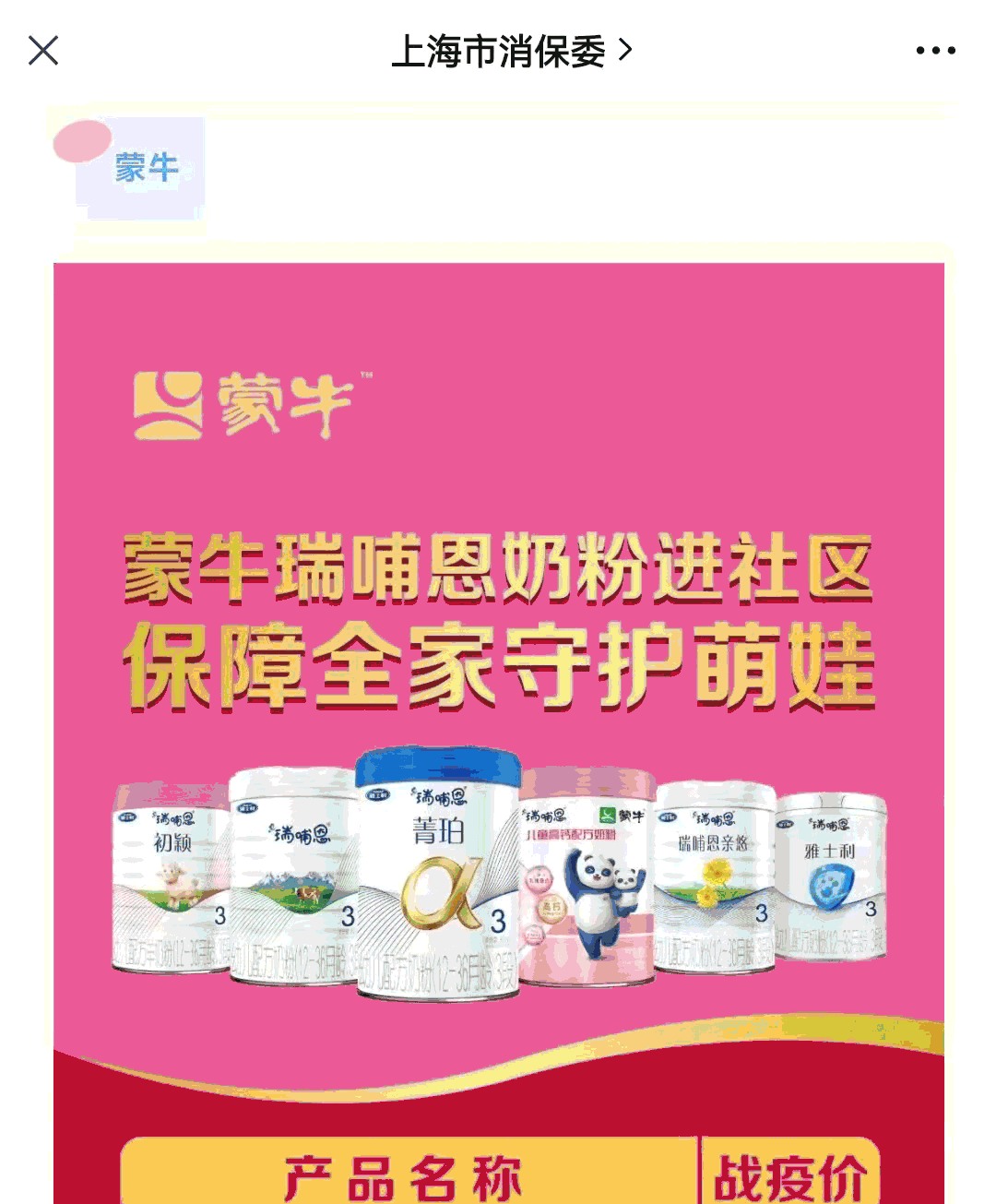 △“上海市消保委”及“上海发布”公众号发布蒙牛及子品牌团购信息