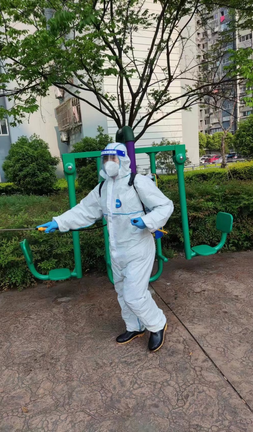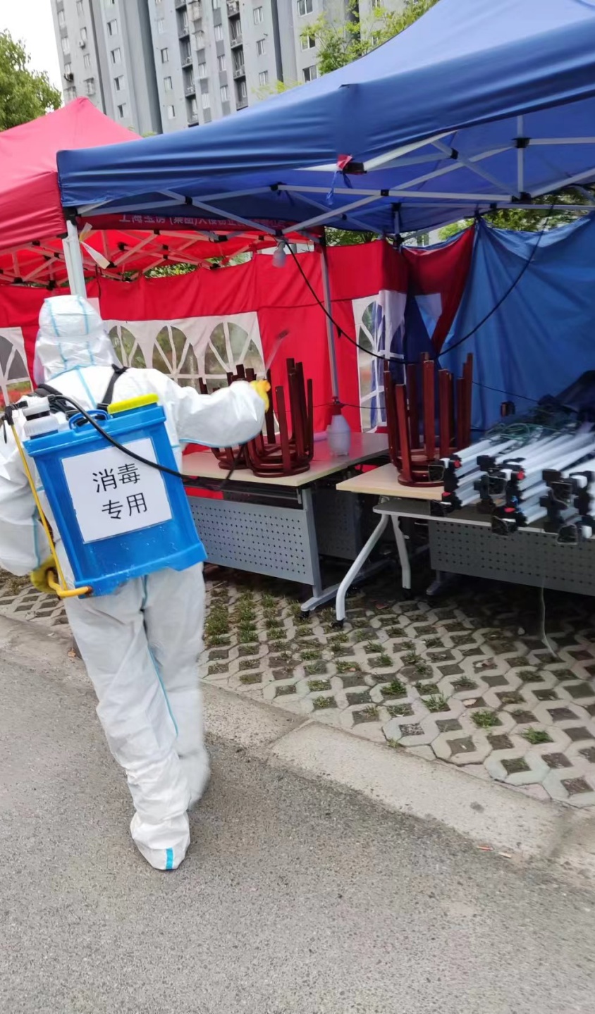 面对严峻的防疫形势,党员干部和青年志愿者勇挑重担,坚定信念、迎难而上。为确保消杀工作全方位无死角,志愿者们全身武装,身背消杀器材,利用专业设备,严格按照标准化规范作业,逐幢门栋进行消毒。