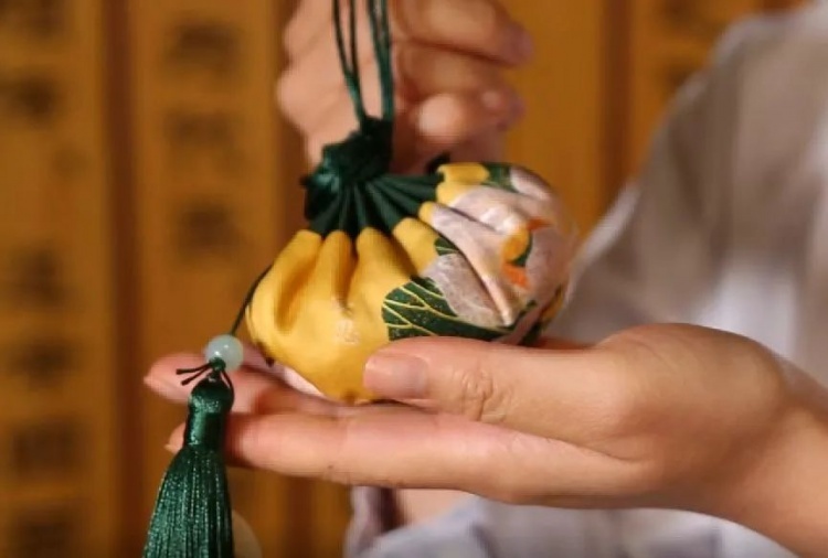 佩戴香囊自古有之,中药香囊源自中医的“衣冠疗法”,民间曾有“戴个香草袋,不怕五虫害”之说。香囊不仅美观,而且可以防病保健,值得推广。