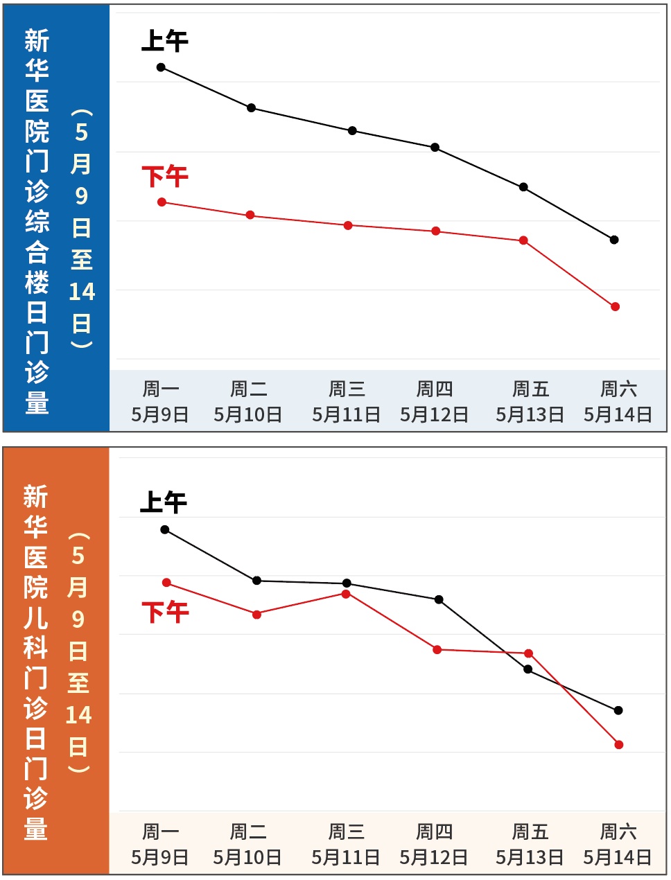 1、避开人流,错峰就医!以下是新华医院近一周内就诊人次的统计数据,可以看得出周一仍然是就诊高峰,周二至周六下午来院就诊更便捷。