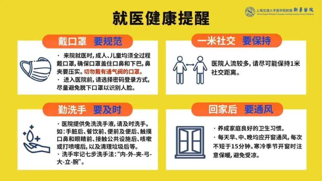 6、进入院区后,请您自觉遵守疫情防控有关规定,全程规范佩戴口罩,勿使用带空气阀的口罩进入院区。就诊时请遵守“一人一诊室”,配合医院工作人员引导,有序候诊,排队时请保持1米以上间距,并减少饮食。