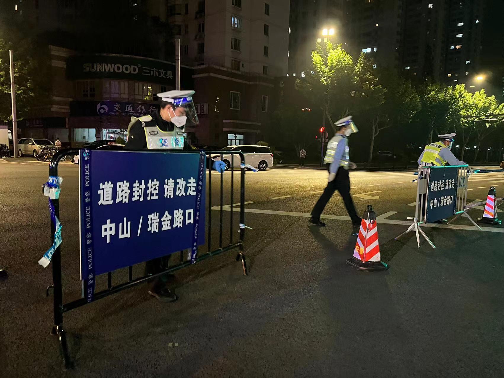 今天上午记者在斜土路瑞金南路看到,相关车辆通行的指示牌已经醒目地放置在路口中央,两区路口都有警察在驻守。据介绍,对于不涉及通行公交线路的交界路口,主要路口则由民警驻守,采用移动护栏、隔离帽方式加强管理。其它路口采取移动式隔离护栏固守方式加强管理。