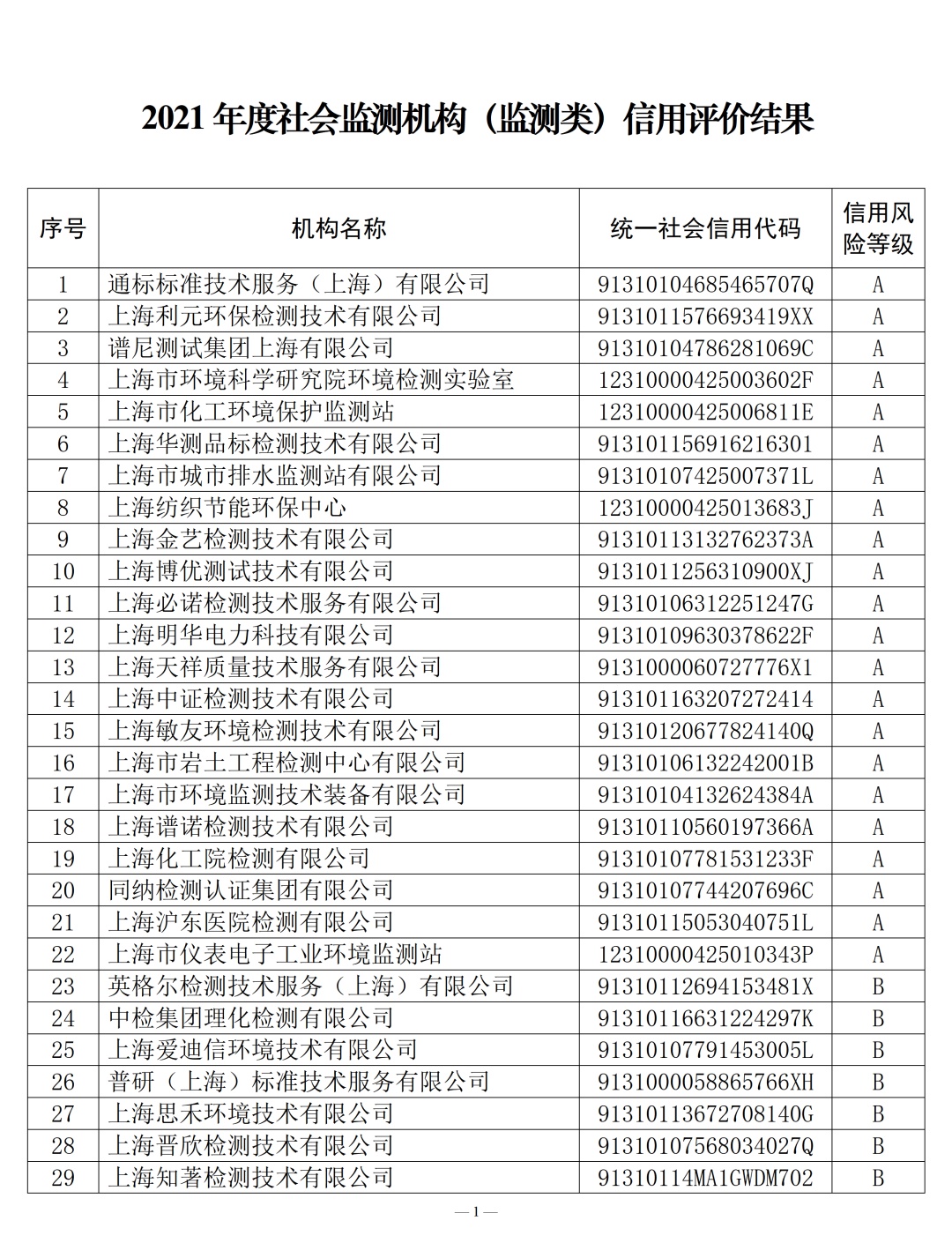 1. 2021年度社会监测机构(监测类)信用评价结果