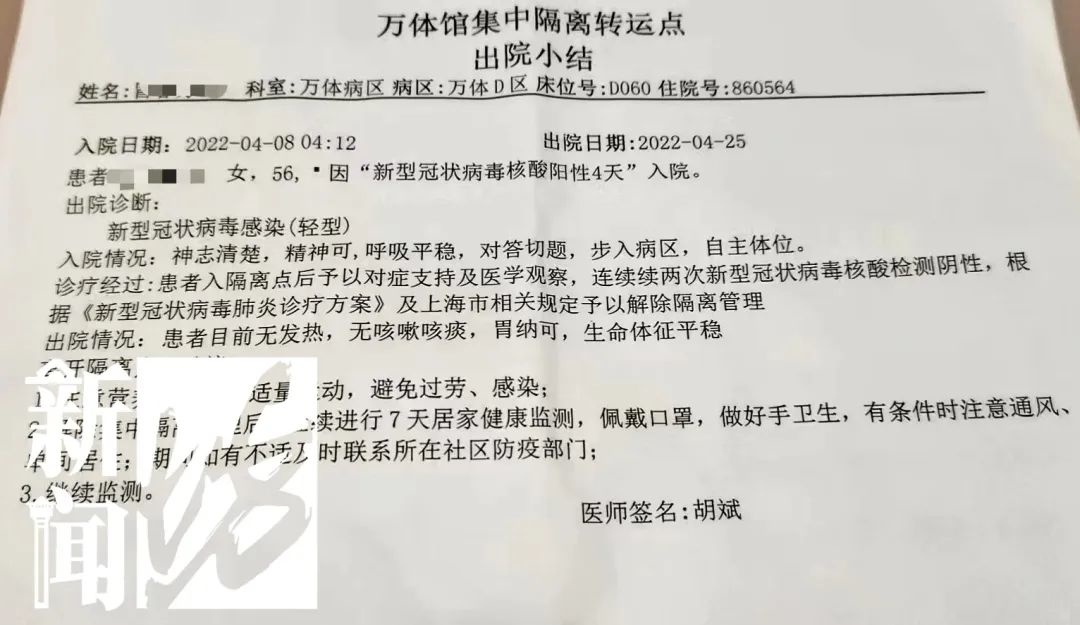 在徐汇万体汇方舱进行治疗的家人出舱时,“方舱医院”提供了纸质的《出院小结》及《解除集中隔离医学证明》。但由于证明没有盖章,在保险理赔时,被保险公司拒赔了。由于万体汇方舱已经处于休舱的状态,目前也没法补章。