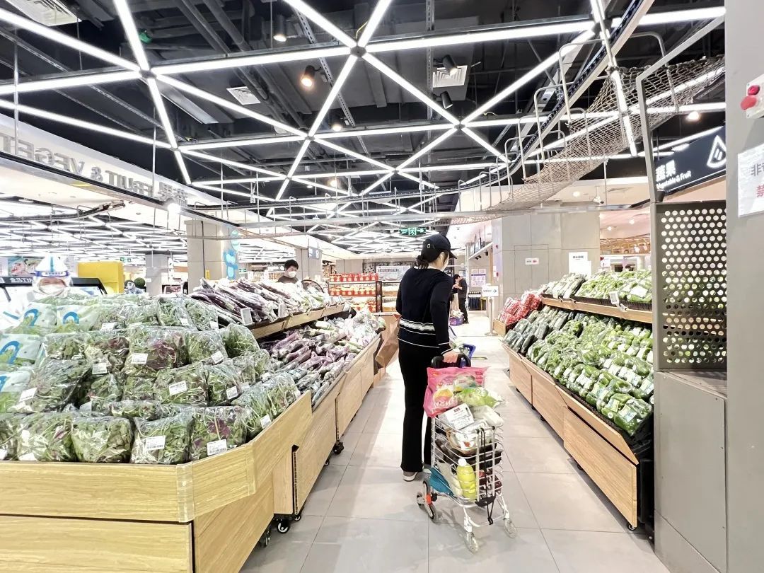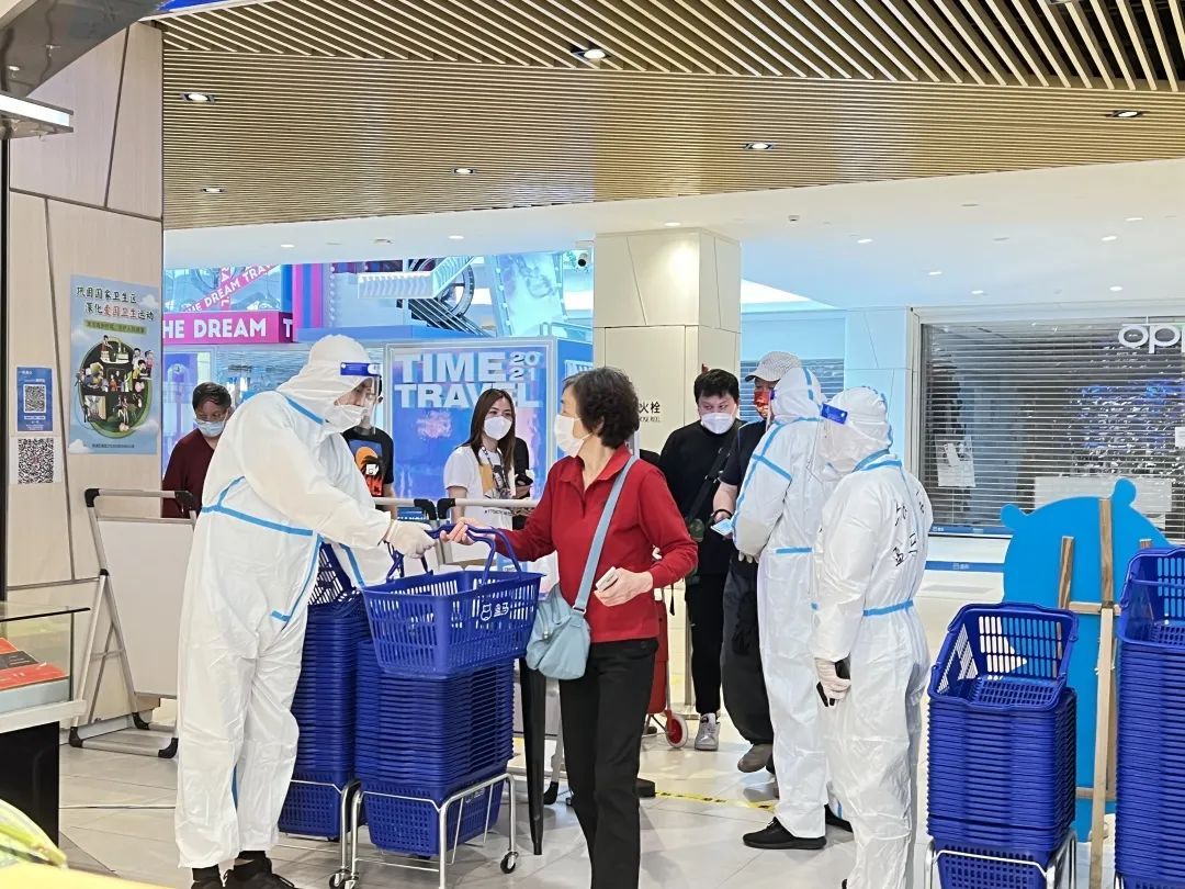 门店线下经营时间是上午9:40到晚上18:00。此外,超市与商场物业联动,安排居民错峰、分批次入场,并限定购买时间段,减少交叉感染的风险。