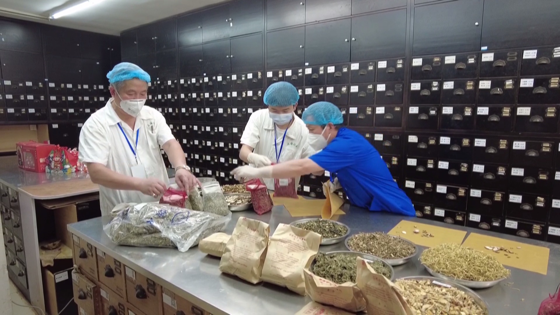 今天上午记者在位于黄浦区瑞金一路95号的上海药房德庆堂国药号看到,虽然大门紧闭,但里面一片忙碌,几名已经复工的员工正在把一味味中药按重量进行配比,加紧生产新研制的防疫驱虫包。上海药房德庆堂国药号经理洪坤浩告诉记者,“防疫驱虫包一共有8味中药,其中有黄芪,增加免疫功能,金银花,有清热解毒,防疫功能,还有紫苏叶,也是解毒的。”