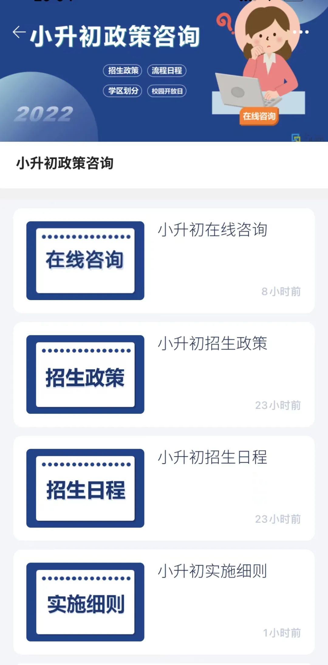 2、点进去,可见幼升小和小升初政策咨询。