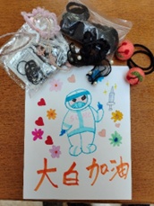后来你交给我很多头绳和一张画,我开始有点糊涂,可你告诉我,你听到妈妈说在隔离病房中工作的医生护士姐姐缺少扎头发的头绳,所以你把自己的头绳都找出来,还画了一幅画,支持在临床一线的姐姐们。