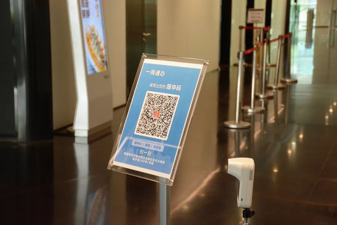 广场上,不少市民和企业员工来到户外放松身心。在写字楼出入口,“场所码”、“数字哨兵”等已配备到位。与此同时,园区里还设置了核酸采样站,便于企业员工进行核酸检测。