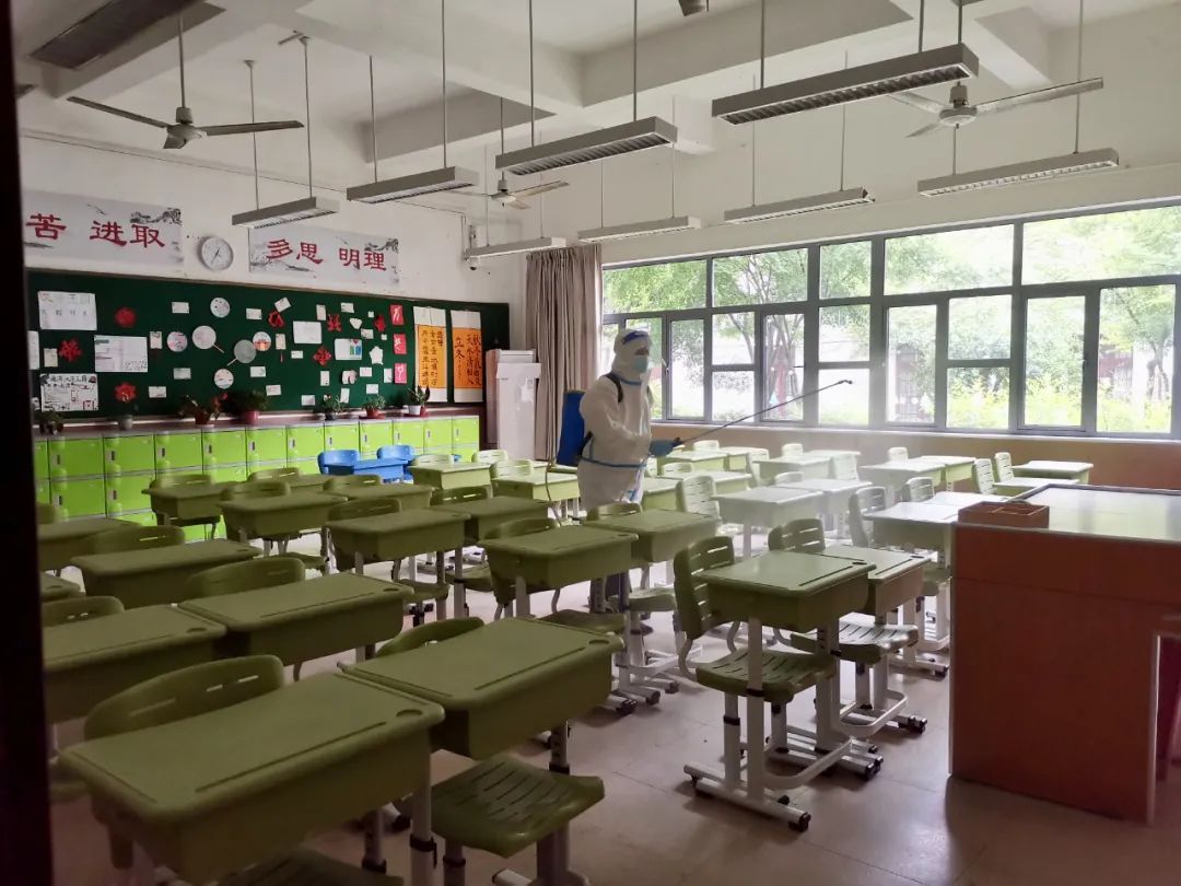 为给复课师生营造一个安全、卫生、舒适、温馨的校园环境,青浦高级中学在校门口添置了场所码、数字哨兵、临时留观区、外来物品消杀区、外来人员抗原检测区;校园内增加了核酸采样点,重启了临时隔离教室、防疫物资与仓库;总务处负责开展专题培训,规范全面消杀及复学后常态化消杀工作,并对整个校园环境进行了卫生清理,防疫消毒了食堂、宿舍、教室、办公室等各个场所,确保所有物品和空间都进行全面彻底的消毒,力争不留盲区。