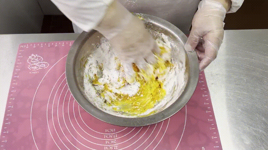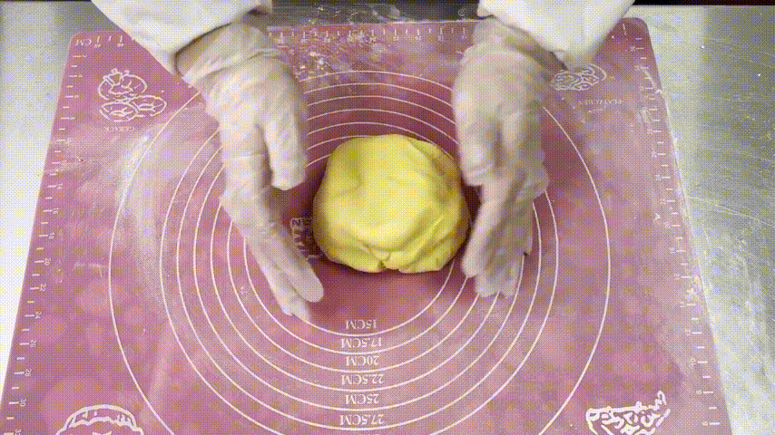 依次加入糯米粉、玉米淀粉、白砂糖,揉成光洁的面团。